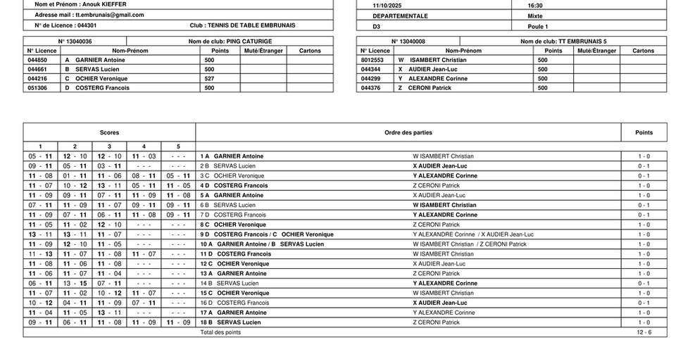 Équipe 5 (D3) : Défaite face à Chorges 1 (6-12)