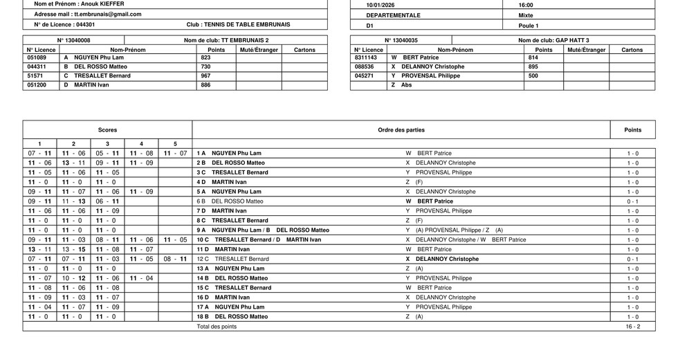 Équipe 2 (D1) : Victoire face à Gap 3 (16-2)
